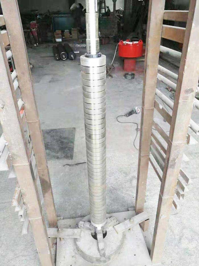 由高强磁钕铁硼组成磁系,磁力高达10000GS-17000GS,可做成直径100、直径134、直径150、直径160、直径220。长度任意定。